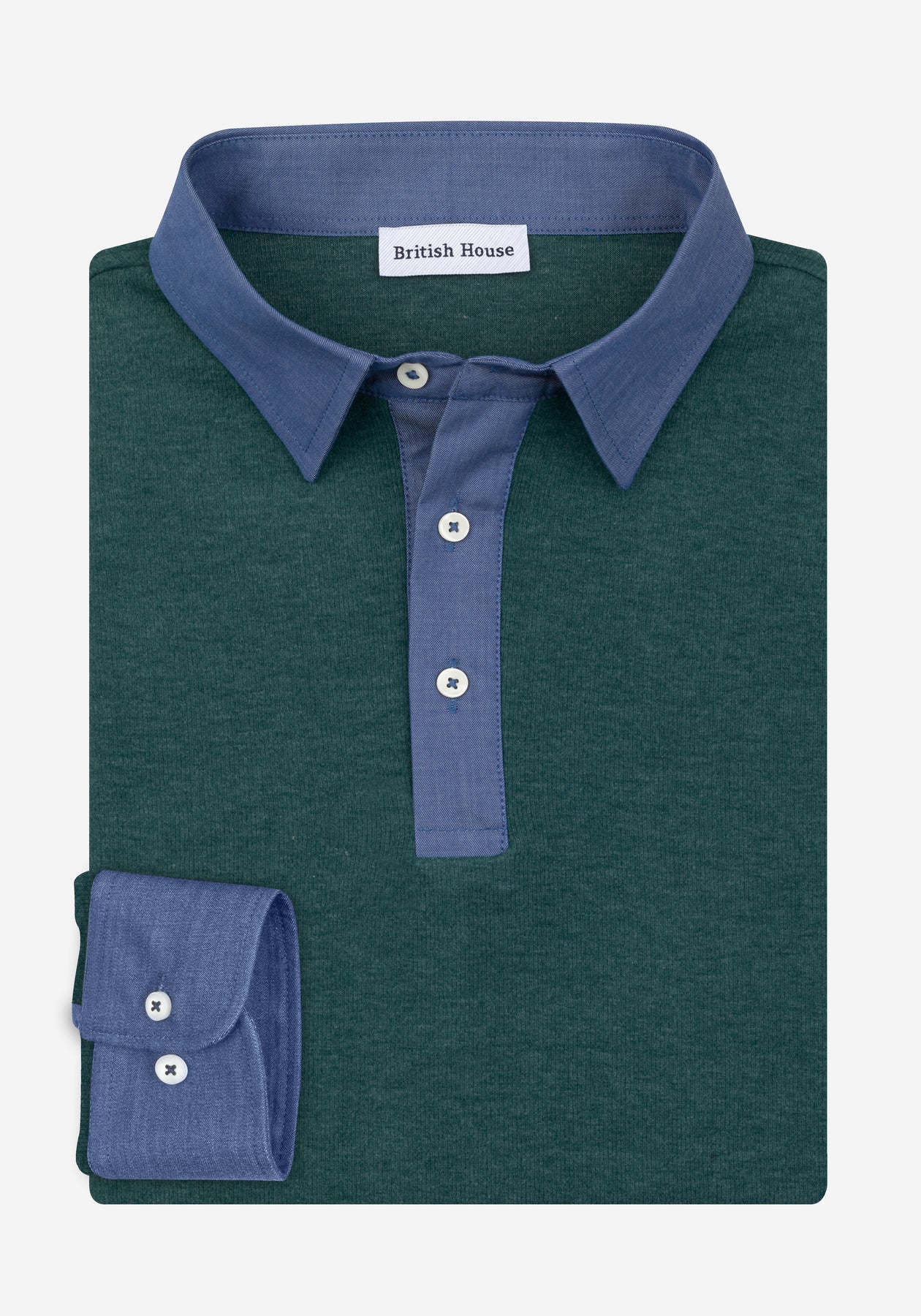 Forest Green Cotton Polo Shirt - Long Sleeve