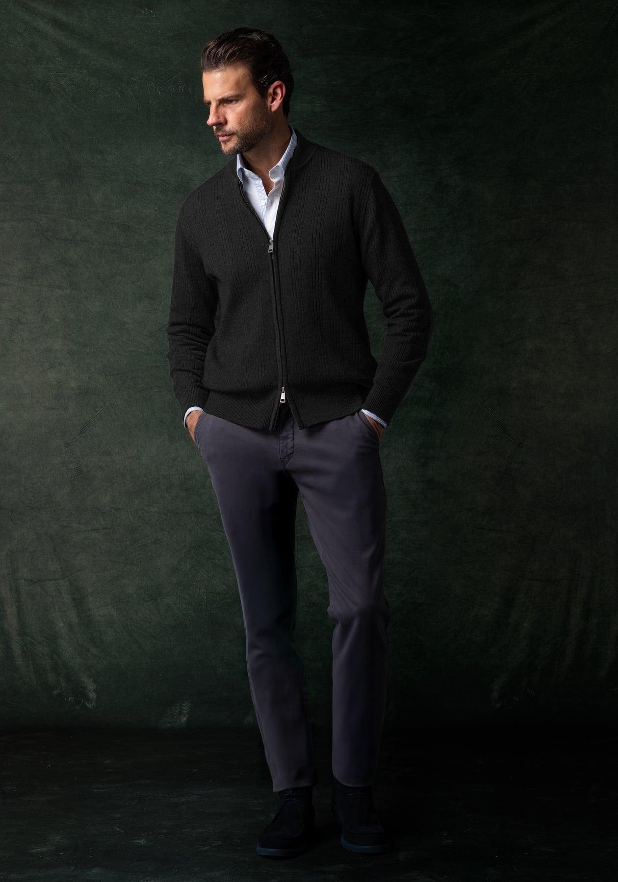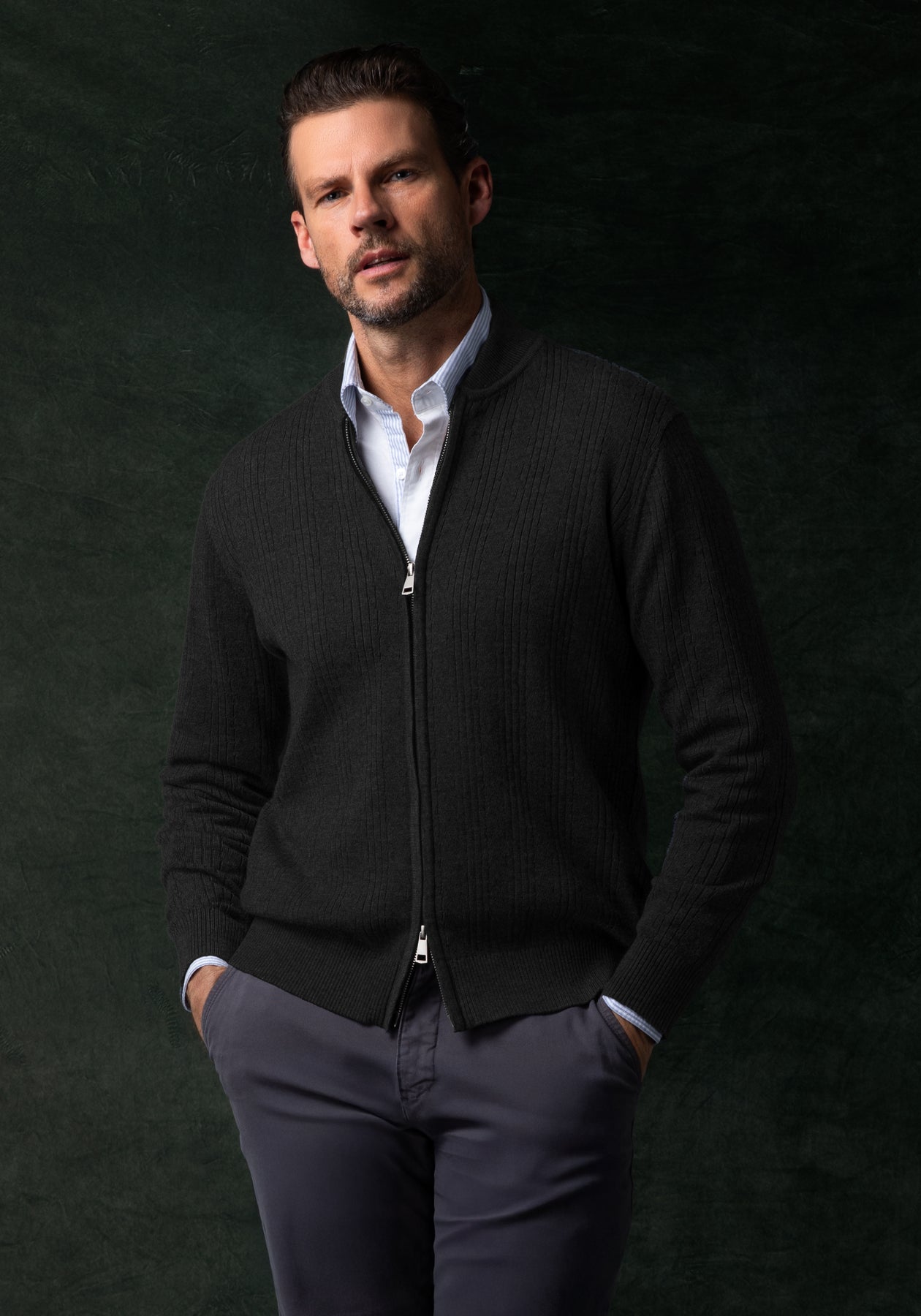 Dusk Black Double-Zipped Merino Wool Blend Pullover